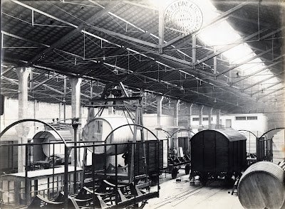 Proceso de fabricación de los vagones de madera foundre, contruidos por la compañía Talleres Herederos Ramón Múgica que incluían dentro una cuba de vino.