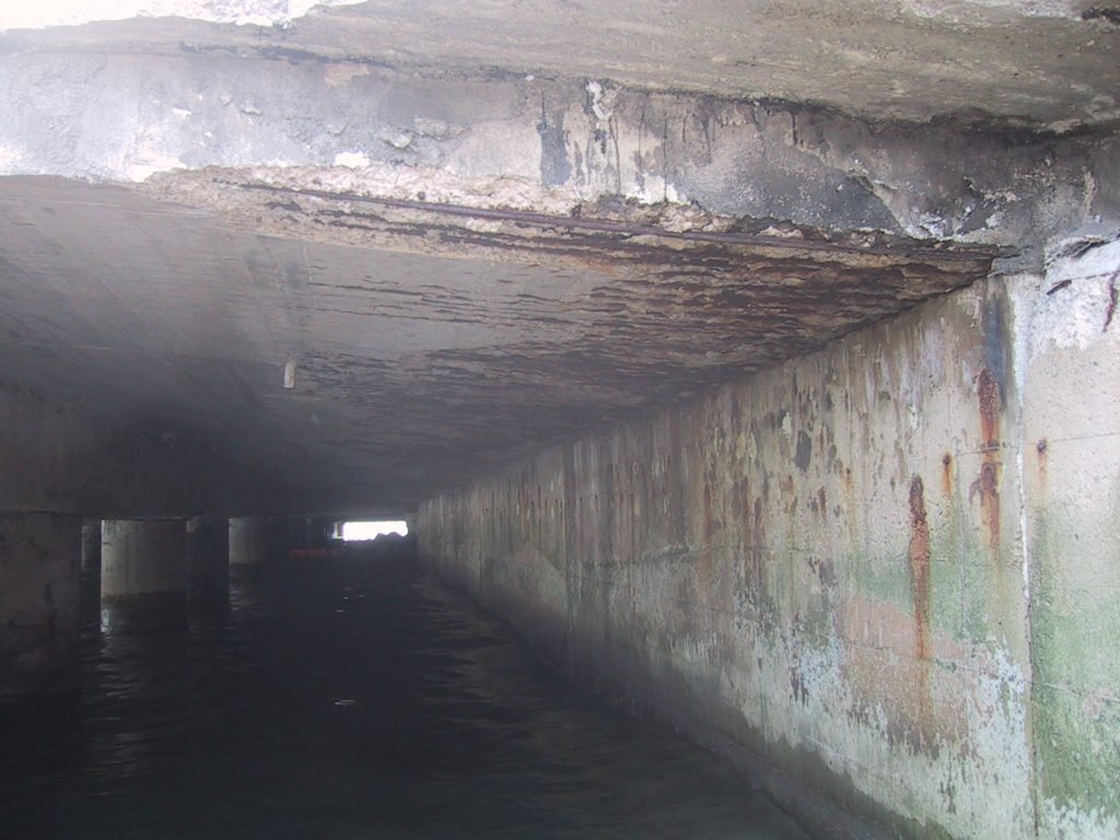 Como se puede ver en la figura 1, todos estos aspectos se producen una vez superada la vida útil de la estructura y conllevan la pérdida de la capacidad resistente que se va desarrollando en el tiempo (véase Guía de reparación de estructuras de hormigón en ambiente marino y Gestión de la Conservación en el entorno portuario: una guía básica).