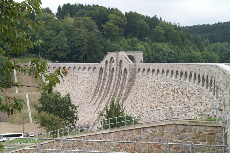 La presa alemana de Klingenberg (1914, rehabilitada en 2002), en las proximidades de Dresde (Sajonia), de 40 m de altura, aprovecha las dimensiones de la cerrada para crear, a través una intervención arquitectónica afortunada, un efecto visual que atempera el efecto muro. Puede verse cómo un juego de arquillos en el paramento dota a la construcción de un ritmo agradable a la vista. Un ejemplo, en su tiempo, de voluntad de modernidad, sabiendo combinar excelencia en la ingeniería, gusto y pulcritud en la ornamentación arquitectónica.