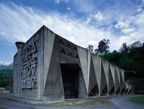 La central eléctrica, bien sea edificada o excavada, abre oportunidades interesantes a la estética, como podemos ver en el ejemplo de Proaza (1968). Allí, la familia asturiana de los Vaquero (Palacio y Turcios), arquitecto y pintor respectivamente, se lució con el edificio que aloja la central, puertas afuera y adentro.
