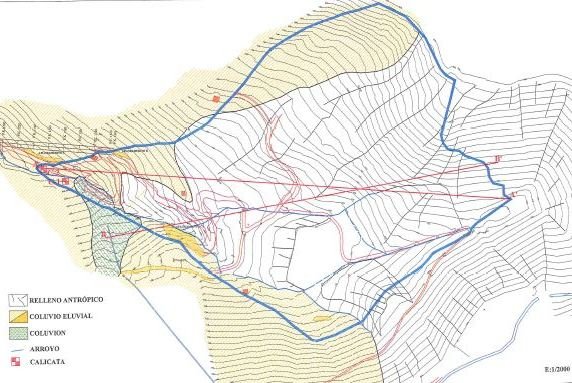 Para la completa definición de la ubicación del depósito, en primer lugar se llevó a cabo un estudio de viabilidad de la ejecución del mismo, realizando un completo reconocimiento de la zona de emplazamiento. En este sentido, se perseguían dos objetivos básicos: por un lado, estudiar la posible afección del nuevo DCRI al terraplén existente perteneciente a la autovía A-66, sobre el que inicialmente estaba previsto apoyarse y, por otro, la elaboración de una cartografía geológica de detalle, con indicación de los puntos de afloramiento de agua y zonas de escorrentía superficial. En cuanto a la caracterización geológica de la vaguada de implantación, se identificaron tres unidades litológicas: