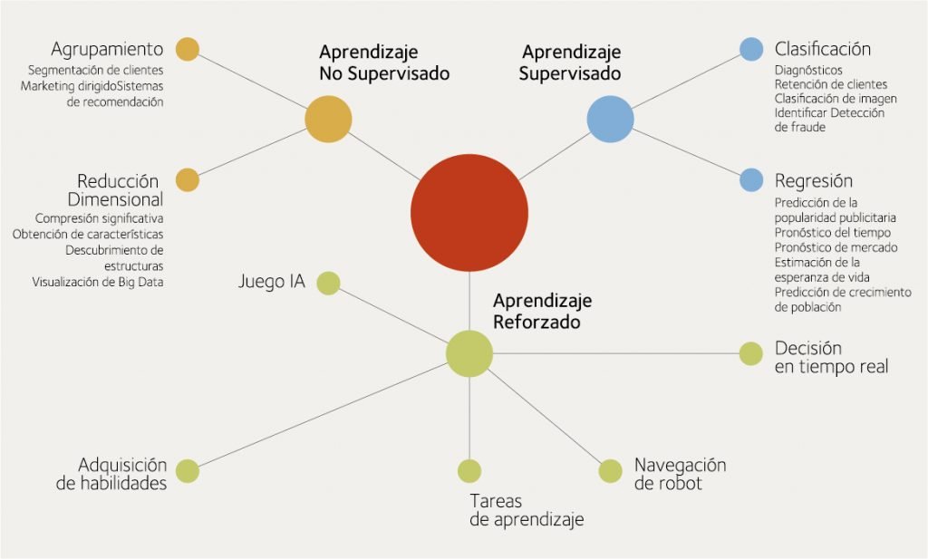 • Aprendizaje supervisado: se enseña al ordenador lo que debe hacer gracias a los datos de los ejemplos etiquetados.