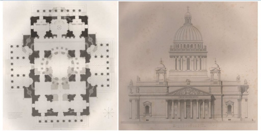 Las decisiones relativas a la distribución en planta y los cimientos de la catedral que fueron tomadas en 1825 permanecieron sin cambios (Fig. 2).