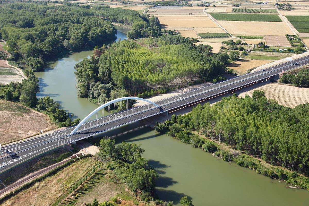 El puente más reciente es el puente arco sobre el Ebro (Millanes, Martínez y Solera, 2017), aguas abajo de Logroño, a media distancia entre el aeropuerto y la ciudad, a la altura del enlace de Recajo, cuyas obras incluyeron asimismo la conexión de la circunvalación de la ciudad (LO‑20), dando alternativa al paso de 15 000 vehículos diarios, entre el acceso desde Zaragoza por la margen derecha, a través de la AP‑68, y la autovía A‑12, en la margen izquierda, que conduce a Pamplona.