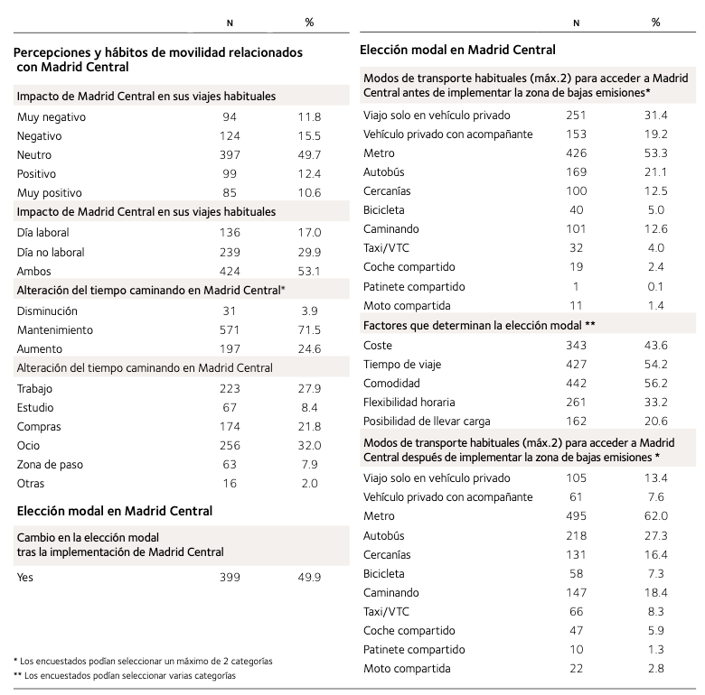 Percepciones, hábitos de movilidad y elección modal en Madrid Central