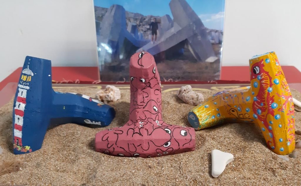 Es el caso de la marina de Ashdod en Israel. Parte de los dolos del parque fueron pintados con grafiti y distribuidos por la playa con la fauna y la flora marina, dando otro atractivo, muy singular, a esta franja costera de arena dorada finísima de la costa sur israelí (Figura 4). En el Museo Herencias del Mar del Laboratorio de Puertos de la ETSICCP de la UPM, el artista Juan Ramón Segura pintó la obra Dibujándolos con la que homenajeó al paisaje hebreo simbolizando la luz, el mar y la vida.