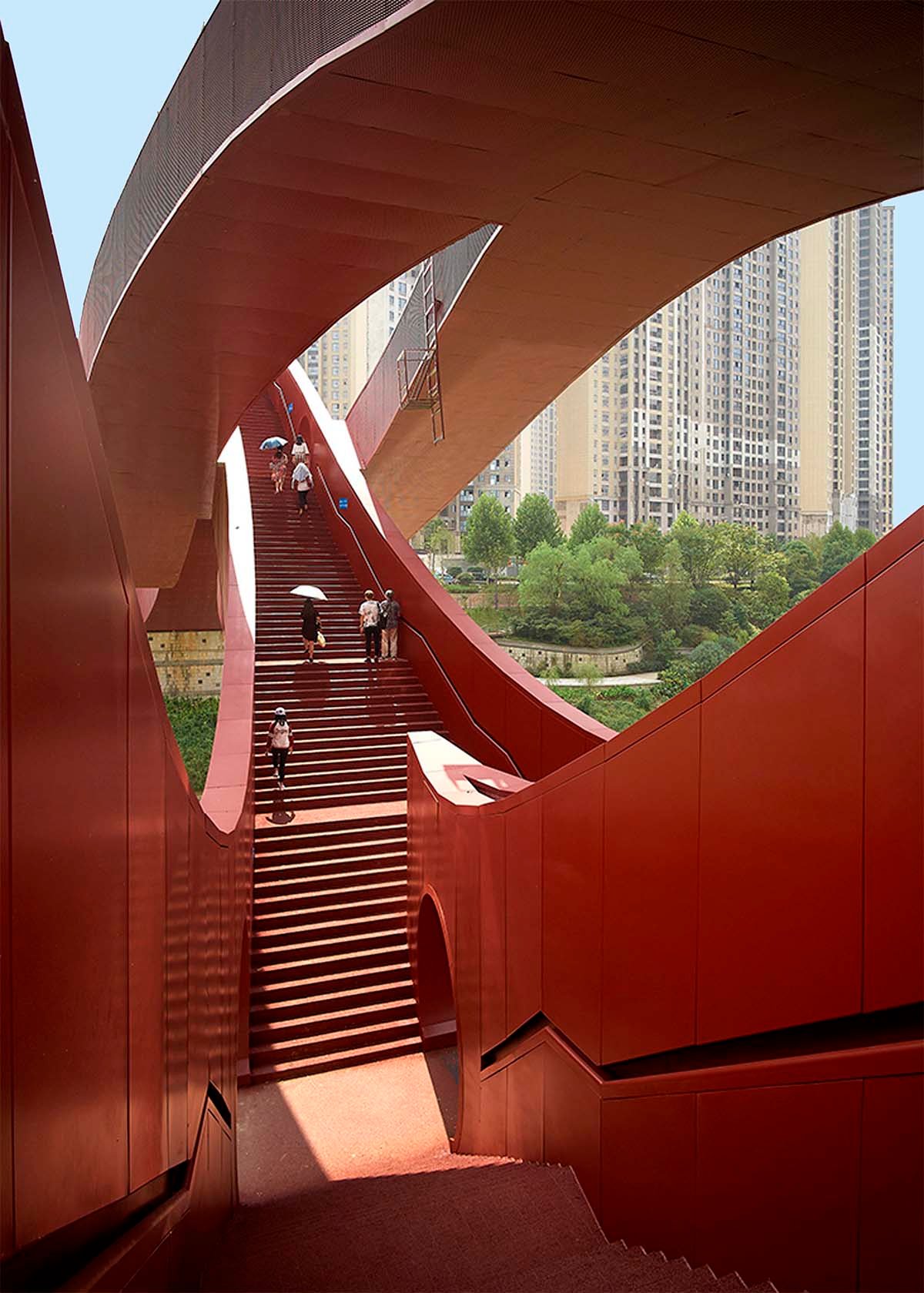 La propuesta formal se inspira en la combinación de la cinta de Moebius y el arte del nudo, un elemento simbólico perteneciente a la antigua cultura popular china que representa la buena suerte y la prosperidad. Con estos dos elementos se materializa un puente que fusiona historia, tecnología, innovación y arquitectura.