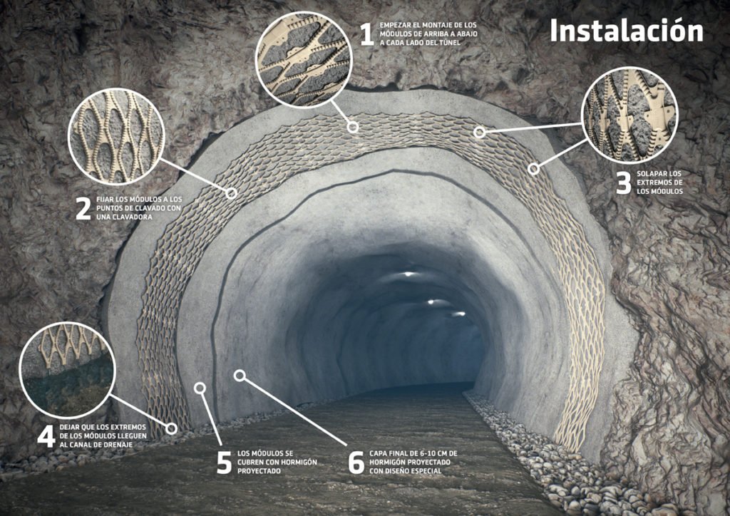 Gracias a la solución que proponemos, se podrían minimizar o evitar las reparaciones como las inyecciones, la adición de más capas de hormigón proyectado o la colocación de un nuevo anclaje, en unas condiciones de trabajo a menudo difíciles.