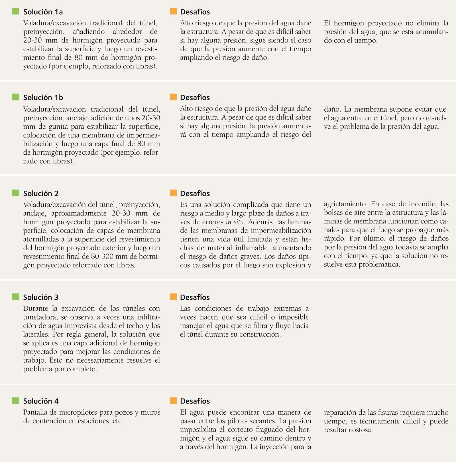 Es importante encontrar una solución a la presión y a las fugas de agua. Las soluciones actuales pueden ser complicadas, costosas e insuficientes o inexistentes. Los daños más comunes en los túneles son acumulación de agua, fisuración y ruptura de la superficie. Las soluciones disponibles hoy en día no abordan todos los desafíos de la penetración del agua a través del hormigón por la presión acumulada.