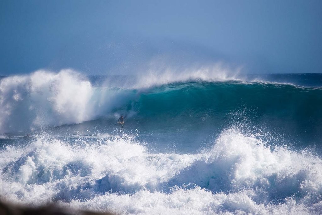Hay un fenómeno singular que afecta a toda la Macaronesia y, por ende, a las costas este y oeste de Tenerife: son los swells del hemisferio sur. Los generan las borrascas que se forman en el entorno de las islas Malvinas durante el invierno austral (verano boreal), y cruzan todo el océano hasta Groenlandia. Tardan entre siete y diez días en alcanzar Canarias, llegan con alturas de ola muy pequeñas, en torno a 1 metro, pero con periodos muy grandes, de hasta 25 segundos; esta combinación hace que, cuando las olas alcanzan la costa rompan en plunging (voluta o tubo), lo que da lugar a tres efectos: inundaciones en las costas este y oeste, resacas importantes en los puertos de estas costas y, por contra, excelentes olas para los surfistas.