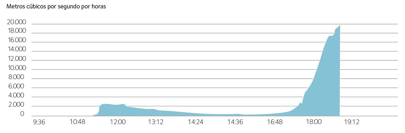 Pero sobre las 14h se reanudaron las lluvias, con una intensidad creciente, llegando a registrarse más de 120 mm en una hora a las 18h. Esta intensidad de lluvia sobre un terreno ya saturado por las lluvias intensas de la mañana, se transformó en escorrentía. El caudal de la rambla aumentó bruscamente y en dos horas llegó a superar los 2000 m3/seg en el único aforador existente, a la altura de Ribarroja. Los efectos aguas abajo son los que, por desgracia, hemos visto.