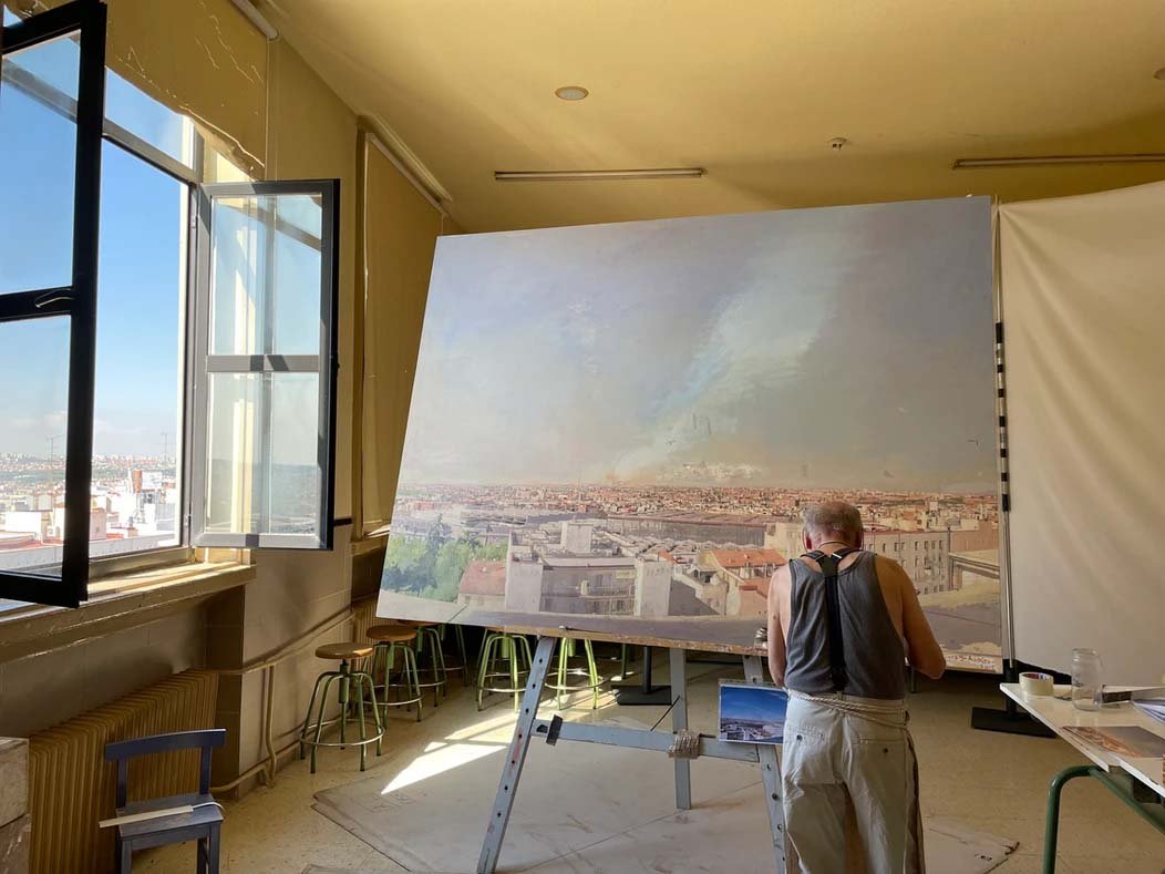 Mirador al arte Un verano sin Antonio López no es lo mismo Pintando Madrid desde la Escuela de Caminos El director de la Escuela de Ingenieros de Caminos de la Universidad Politécnica de Madrid, José Miguel Atienza, describe al pintor Antonio López como la persona más querida por el personal de la Escuela. Dentro del