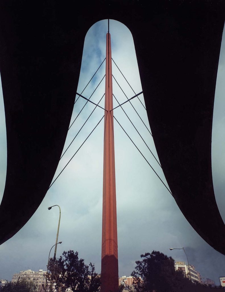 Fue una obra con mucho significado. Obtuvo el premio de Sercometal, los fabricantes de metal. En este caso, de la planta en Y podemos decir que es por las condiciones de funcionamiento de la pasarela. Es decir, había que conectar tres puntos y estaban en una disposición que requerían esa forma. Y en ese caso la condición del lugar fue fundamental para darle forma y colgar desde una sola torre los tres planos de tirantes.