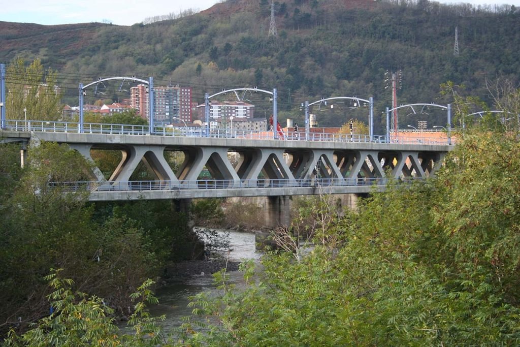 Doble puente ferroviario de Etxebarri sobre el río Nervión. Bilbao, España 2005.