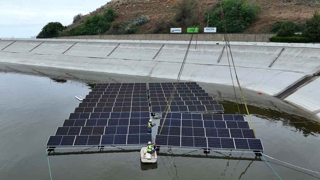 En la actualidad ya están ejecutadas las obras en cuatro instalaciones para una capacidad total de generación de 650 kWp, y se está ejecutando la instalación fotovoltaica flotante en la Balsa de San Antonio para autoconsumo, con compensación de excedentes de 112 kWp. Se trata de un proyecto piloto pionero en las islas en el que se van a testear dos sistemas diferentes de flotación, con distintos grados de inclinación, y su contraste con los datos de generación de una instalación en tierra.