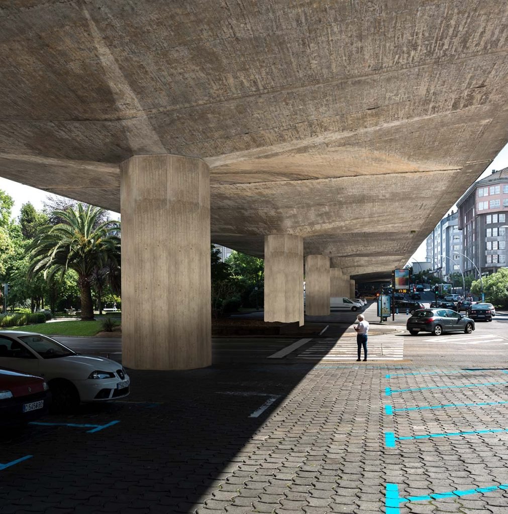 Una obra bastante espectacular que tuvo importancia en su momento fue el paso inferior de la avenida —hoy Gran Vía— Carlos III en Barcelona en su cruce con la Diagonal, una obra compleja por la superposición de carriles a diferentes niveles que obligó a grandes voladizos. Se terminó en 1971.