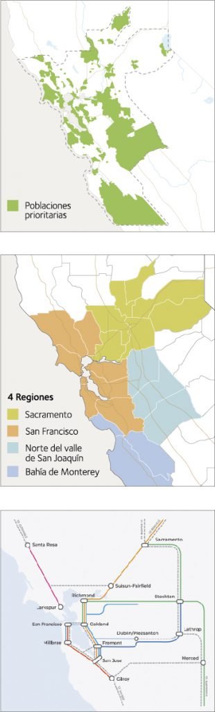 El ámbito de planificación ha quedado establecido por la megarregión de California del Norte, integrada por veintiún condados que incluyen entre otros, además de San Francisco, Sacramento –capital del estado– y Santa Clara –donde se localiza el bien conocido Silicon Valley– distantes aproximadamente doscientos kilómetros entre sí.
