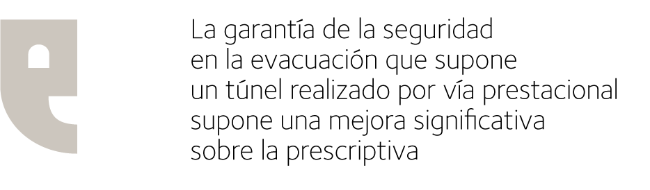 Como se ha mostrado, la vía prescriptiva y la vía prestacional permiten la fijación de los parámetros necesarios para el diseño de las soluciones de evacuación. Sin embargo, existen situaciones en las cuales un túnel que el modelo prescriptivo califica como no seguro