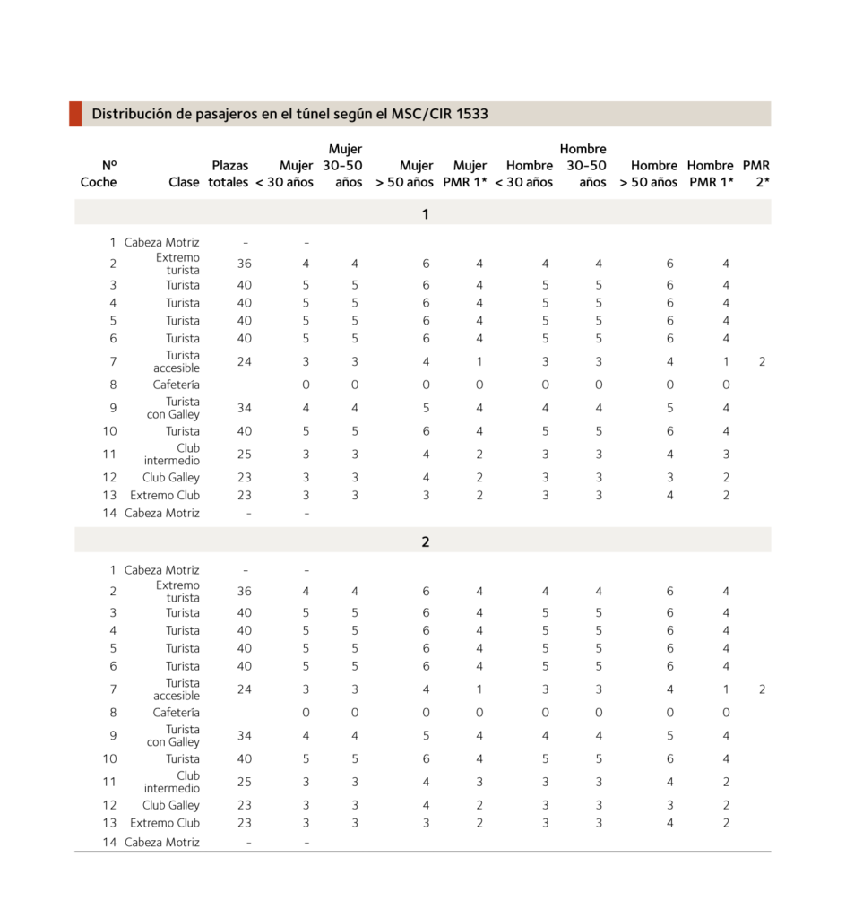 La distribución de velocidades considerada se corresponde con la presentada en el MSC/CIR 1533 (6). En base a esto, en la tabla de la página 150 se recogen los datos de ocupación de los distintos vagones del tren.