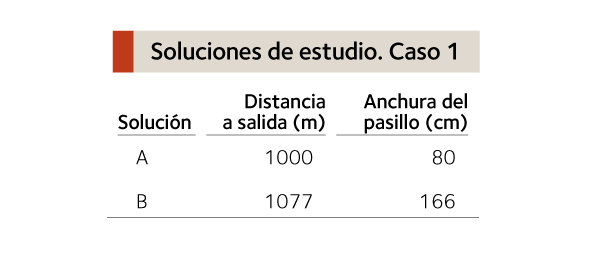 Por tanto, en base a los resultados obtenidos, se puede determinar que el hecho de tener un pasillo de mayor anchura (166 cm frente a los 80 cm mínimos estipulados en la norma) aporta un mayor nivel de seguridad a la infraestructura, a pesar de tener que recorrer 77 metros adicionales y no cumplir con la distancia máxima estipulada en la norma.