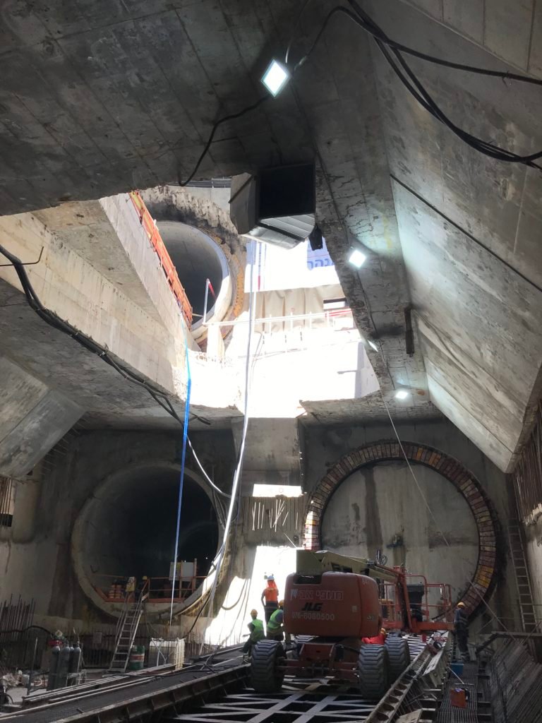 La Red Line de Tel Aviv (Israel) consta de diferentes ejes. Una serie de cámaras distribuidas por toda la línea permiten la continuidad de los ejes. La línea tiene una configuración de doble túnel paralelo de vía única. Los túneles tienen un diámetro interior de 6,50 m y se han excavado con varias EPB. El diámetro de excavación es de 7,2 m.