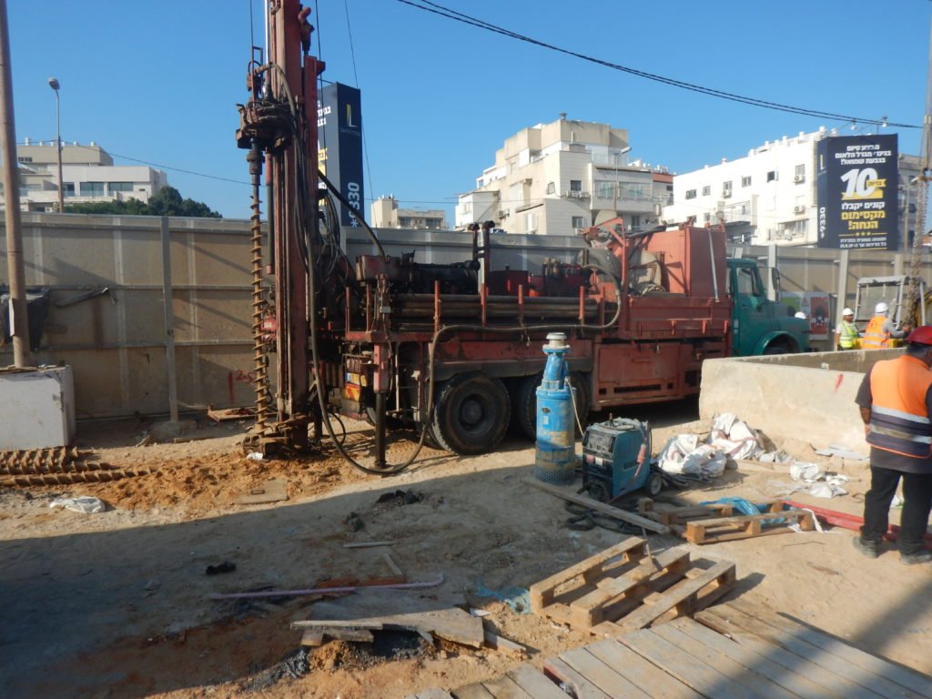 El mismo día 5 de julio se inicia una nueva serie de inyecciones de PU, pero esta vez en la zona del contacto muro-pantalla y desde el interior del anillo R279. Mientras el achique continúa dentro de la cámara, en paralelo se hacen inyecciones de consolidación en el extradós de los anillos a base de cemento con geles de silicato. Además, los últimos diez anillos instalados son conectados entre ellos mediante bridas fabricadas a base de perfiles de acero UPN 120; las instaladas en dirección circunferencial fueron combadas en taller para adaptarse a la curvatura del túnel. Se intensifica la auscultación, incluyendo los otros dos túneles ya concluidos del testero. A la vista del volumen de material arrastrado, se procede a realizar diversos perfiles GPR para detección de posibles cavidades alrededor de la cámara y el túnel. En este punto, el vial ya había sido cortado hasta determinar el alcance exacto del incidente y evitar cualquier riesgo para vehículos y peatones. La vía afectada se encuentra junto a la intersección de dos de las principales carreteras de Tel Aviv, en las que los embotellamientos son habituales varias