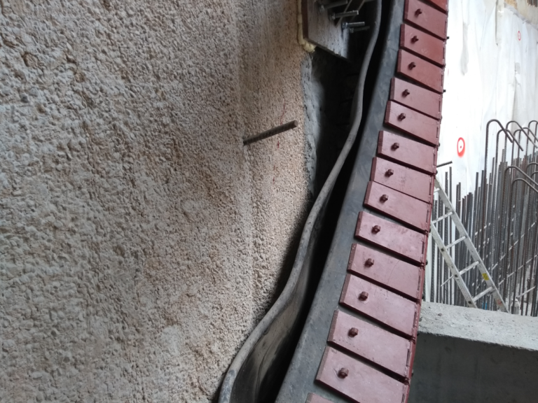 En el caso particular de este artículo, la solución que diseñamos para la entrada de la EPB al pozo consistía en un bloque de jet grouting de dimensiones 12,50 × 12,50 × 11,50 m (ancho × largo × alto) en el extradós de los módulos de pantalla, combinado con un anillo de sellado de tipo simple, es decir, con una única junta elastomérica, aunque se pueden instalar más. En este mismo proyecto también se han empleado juntas dobles en algunas ocasiones.