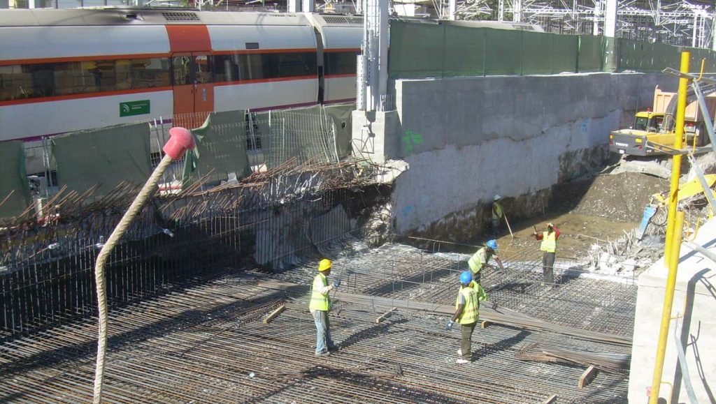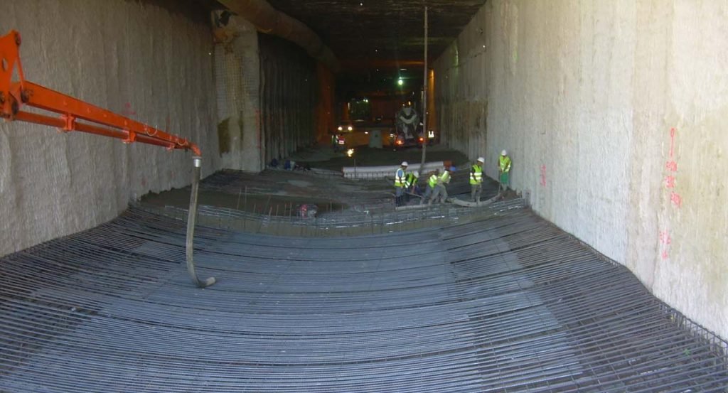 Se hizo la excavación bajo dintel (según se avanzaba en ella, se colocaban puntales metálicos, restringiendo de este modo el movimiento de la pantalla en cabeza) y la impermeabilización y la construcción de la contrabóveda de hormigón armado.
