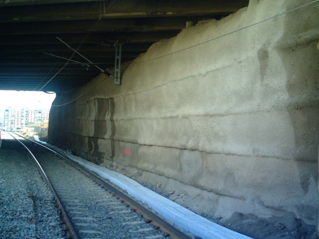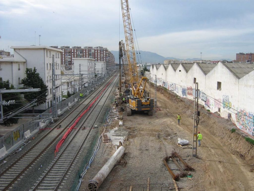 En la situación previa a la obra, las vías discurrían por el vano central de la estructura de la A-7 y, para poder realizar el sostenimiento necesario y hacer las pantallas del túnel y la excavación del mismo, se trasladaron, como se ha dicho, las vías al vano lateral sur. Todos los trabajos se realizaron con paso de trenes de forma continua y constante.