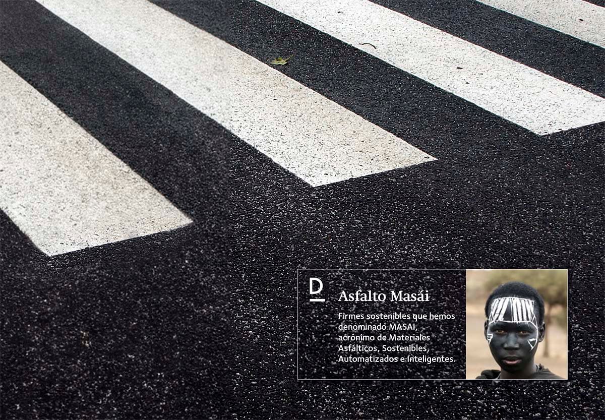 Desde la Administración, y en estrecha colaboración con la Universidad —mejor dicho, al servicio de la investigación, en este caso la de primer nivel que se gesta en el Laboratorio de la Ingeniería de la Construcción de la Escuela Técnica Superior de Ingenieros de Caminos Canales y Puertos de Granada (LabIC.UGR)—, se han desarrollado y ensayado en nuestras carreteras unos firmes sostenibles que hemos denominado MASAI, acrónimo de Materiales Asfálticos Sostenibles Automatizados e Inteligentes.