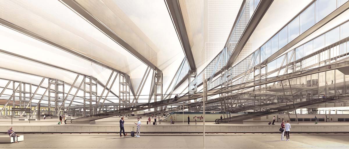 - La estación subterránea, aparte de dar la dimensión y el nivel de servicio asociados al gran flujo de intercambio entre Cercanías, Alta Velocidad y Metro, crea un espacio de conexión urbana entre el este y el oeste. Las dimensiones de este corredor permiten su uso como terminal de llegadas alternativa, descongestionando los flujos de la terminal, pero sin competir en representatividad e imagen con aquella.