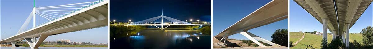 - El puente sobre el río Guadalquivir, en Córdoba, está formado por un tablero de hormigón atirantado en el eje del puente sobre un pilono central situado en el río. En este caso, el tablero, compuesto por una viga cajón de tres células con amplios voladizos, se apoya en un pilar en forma de V. Los puntales inclinados rigidizan significativamente la estructura y, junto con el pilono situado en el centro, crean un punto de cruce de gran eficiencia estructural y alto interés arquitectónico.