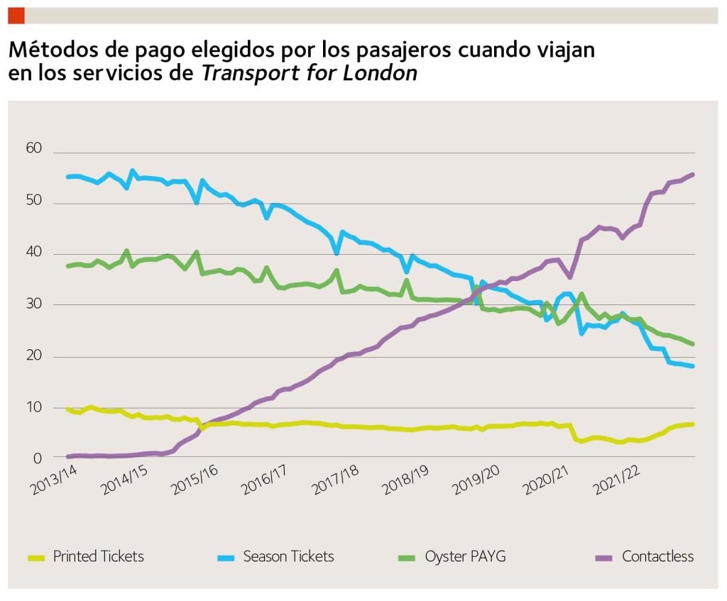 El inicio de la transformación del sector lo ha marcado la digitalización de los sistemas de acceso y pago al medio de transporte. Además de abaratar los costes de operación por la recogida de la recaudación, generan confianza en el sistema y reducción de los tiempos de embarque y transbordo. Pero lo más relevante es la nueva capacidad de identificar a los clientes y registrar sus usos y hábitos, protegiendo su privacidad y asegurando el cobro de la tarifa más ventajosa al final de un periodo determinado. Los modelos ABT (account based ticketing) y los open loop payments eliminan la necesidad del uso de tarjetas específicas de transporte.