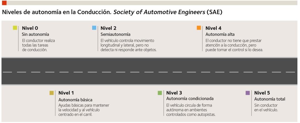 La IA es crucial para el desarrollo de la conducción autónoma. Ya hay importantes avances en vehículos de ridesharing y en los de uso compartido. Progresivamente se verán niveles más elevados de autonomía en medios públicos.