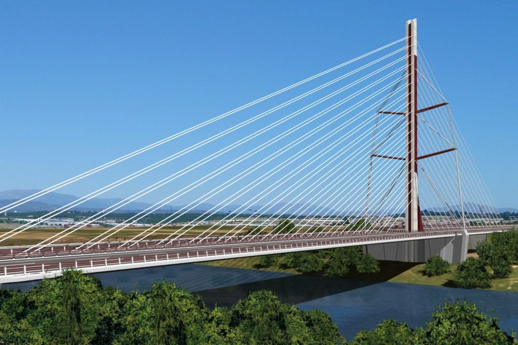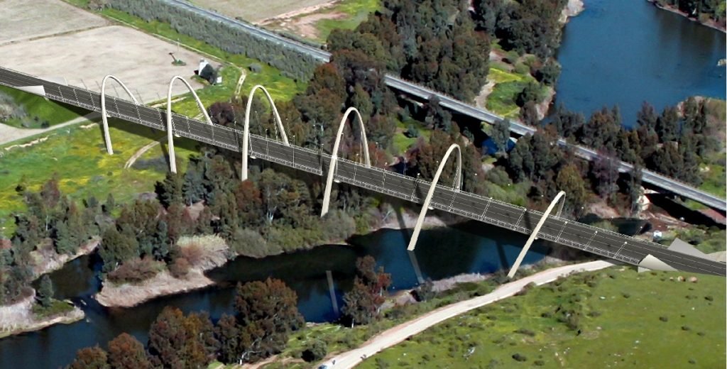 Se trata de un puente arco con tablero intermedio, de dimensiones muy considerables. El arco mixto de 162 m de luz y el tablero con el arco atravesándolo y colgándolo por el eje tiene 30 m de anchura. Una obra difícil de hacer y de imaginar, pues presenta muchos problemas resistentes poco habituales.