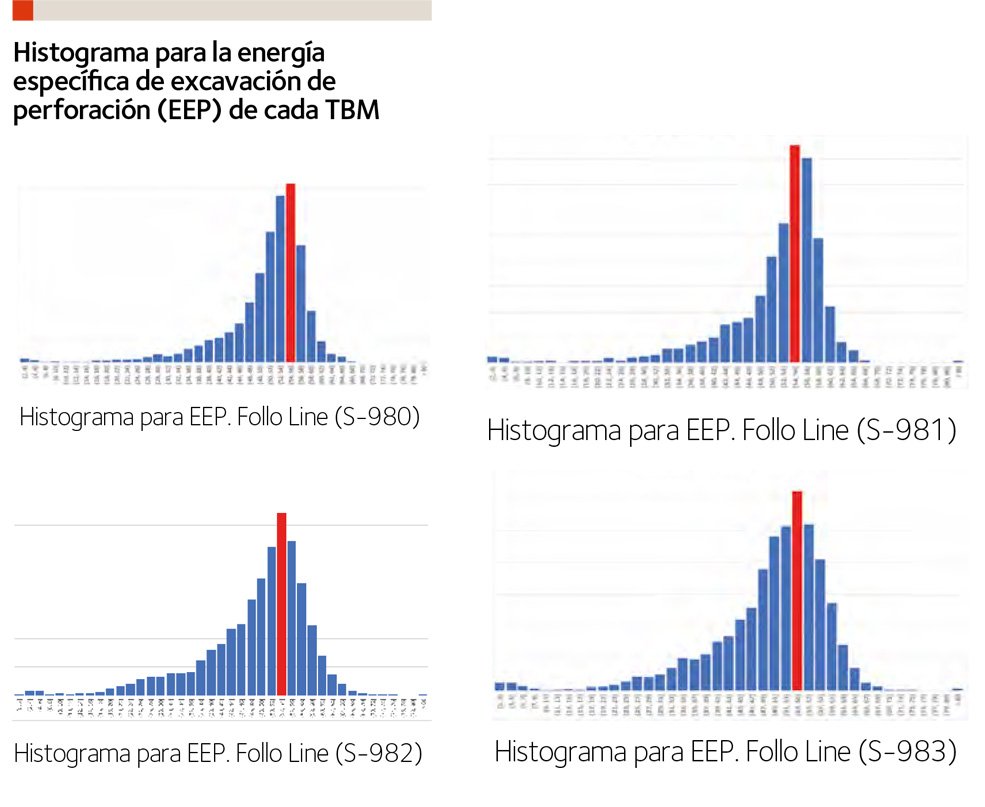 La ventaja de esta correlación reside en que la EEP se puede exportar directamente de los parámetros de operación de las TBM que se registran a lo largo de toda la traza, lo cual permite, por tanto, analizar los cambios en función de la geología atravesada.