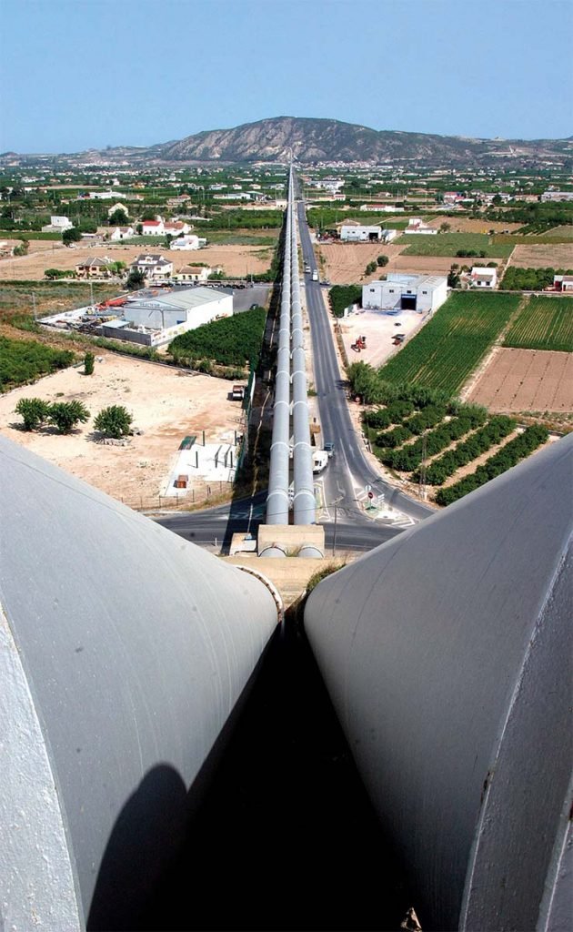 Más recientemente, el acueducto Tajo-Segura es una de las últimas grandes obras hidráulicas que caracterizaron el periodo 1950-1980 y que convirtieron a España en uno de los países del mundo con mayor número de grandes presas en servicio. La idea de utilizar un trasvase desde la cuenca del Tajo a la del Segura se remonta a principios de los años treinta y, de hecho, ya se preveía en el mencionado Plan de Lorenzo Pardo, de 1933. Se convirtió en una obra emblemática, tanto por su ambición de transformar en regadío unas 150.000 hectáreas –en lo que ya empezaba a llamarse la “huerta de Europa”– y el abastecimiento a 2,5 millones de habitantes, como por sus características técnicas: casi 300 km de longitud, relieve complicado que obligó a la construcción de acueductos y túneles, etc.
