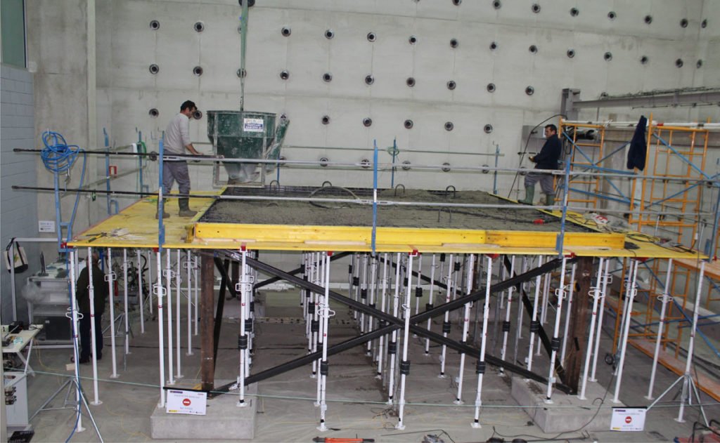 Considerando las consecuencias que tienen los fallos durante la construcción de estructuras de edificios (Carper 1987; Hadipriono y Wang 1987; Buitrago et al. 2018a), en 2014 arrancamos una nueva línea de investigación relacionada con la robustez y el colapso progresivo de edificios en construcción. Esta investigación fue financiada por el Ministerio de Educación y Formación Profesional y la Generalitat Valenciana. La investigación ha sido pionera a nivel mundial por ser la primera vez que se analiza cómo el fallo de uno o varios elementos de una cimbra puede llevar al colapso progresivo de toda la cimbra (Fig. 1) o incluso de todo el edificio en construcción. La investigación ha permitido identificar los caminos de carga alternativos que se pueden movilizar ante el fallo de uno o varios elementos de una cimbra (Buitrago et al. 2018b).