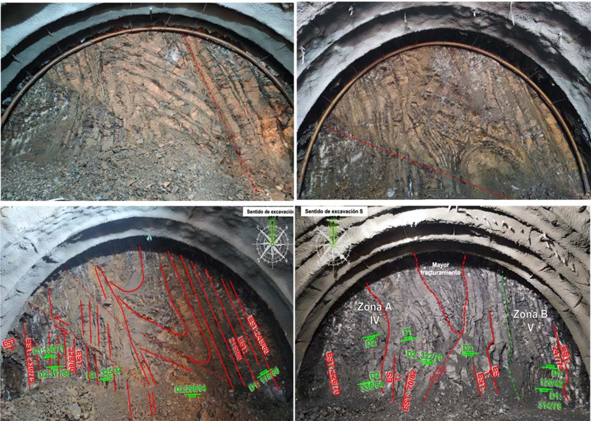 El complejo ambiente tectónico del área de los túneles se traduce en deformaciones frágiles y dúctiles de los diferentes tipos de rocas