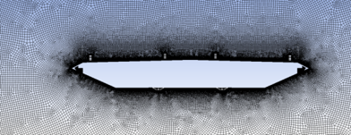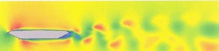 La eficacia de los métodos puramente computacionales se ve comprometida porque los tableros de puente, incluso aquellos de geometría aerodinámica, llevan elementos añadidos, como las barreras de seguridad, barandillas o raíles para el mantenimiento, entre otros, que alteran el flujo de viento y crean turbulencias de diferente naturaleza y magnitud. De forma resumida, podría decirse que en la actualidad son capaces de obtener los coeficientes aerodinámicos de los tableros, es decir, CL, CD y CM, pero todavía no proporcionan adecuadamente los valores de las funciones de flameo. En la figura 8 aparecen imágenes de una simulación mediante CFD.