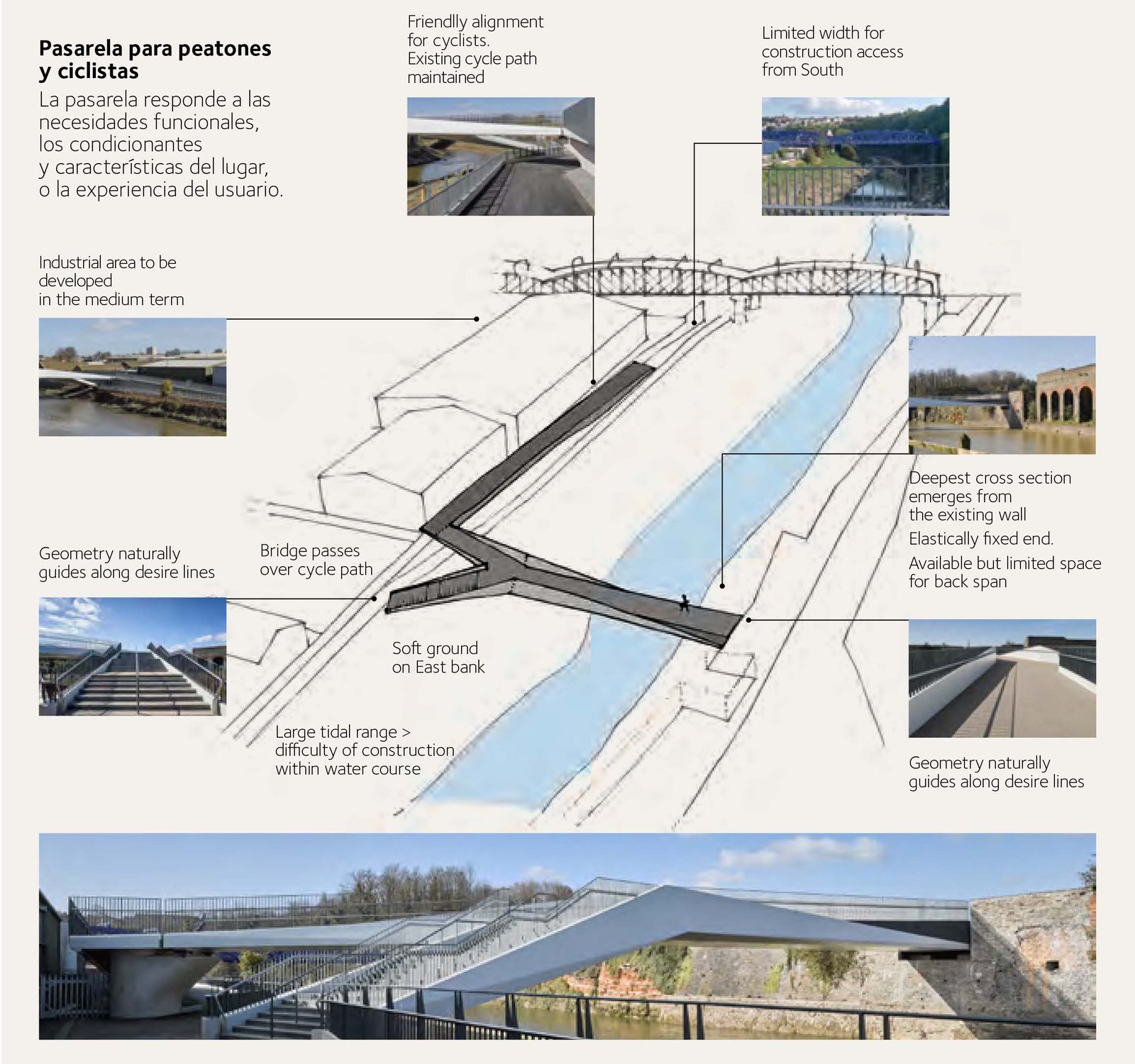 Bridges are a paradigmatic example of the transformation of nature by humans. They are symbols of union, progress, or innovation, defying gravity and modifying landscapes. Each bridge is unique and important. They link communities, connecting people, inviting interaction andintegration. They cross physical, cultural, and spiritual barriers, often becoming landmarks or even icons. The design of such emotive, prominent, and enduring constructions must go beyond their primary function as infrastructural elements connecting areas, always aspiring to improve the quality of the built world.