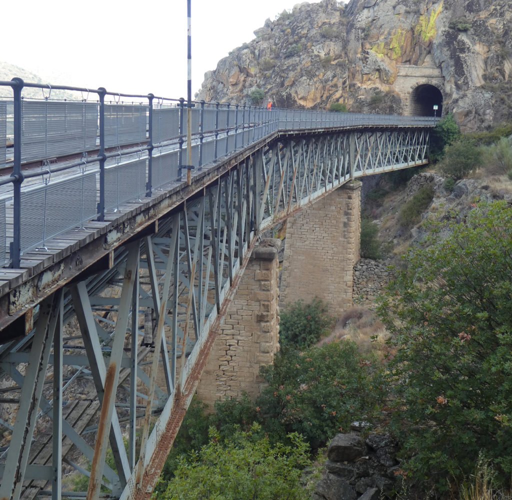 Una vía verde donde no se ha levantado la vía, lo que remite permanentemente al usuario a su carácter ferroviario, y deja abierta una indudablemente compleja y costosa, pero posible, reapertura al tráfico.