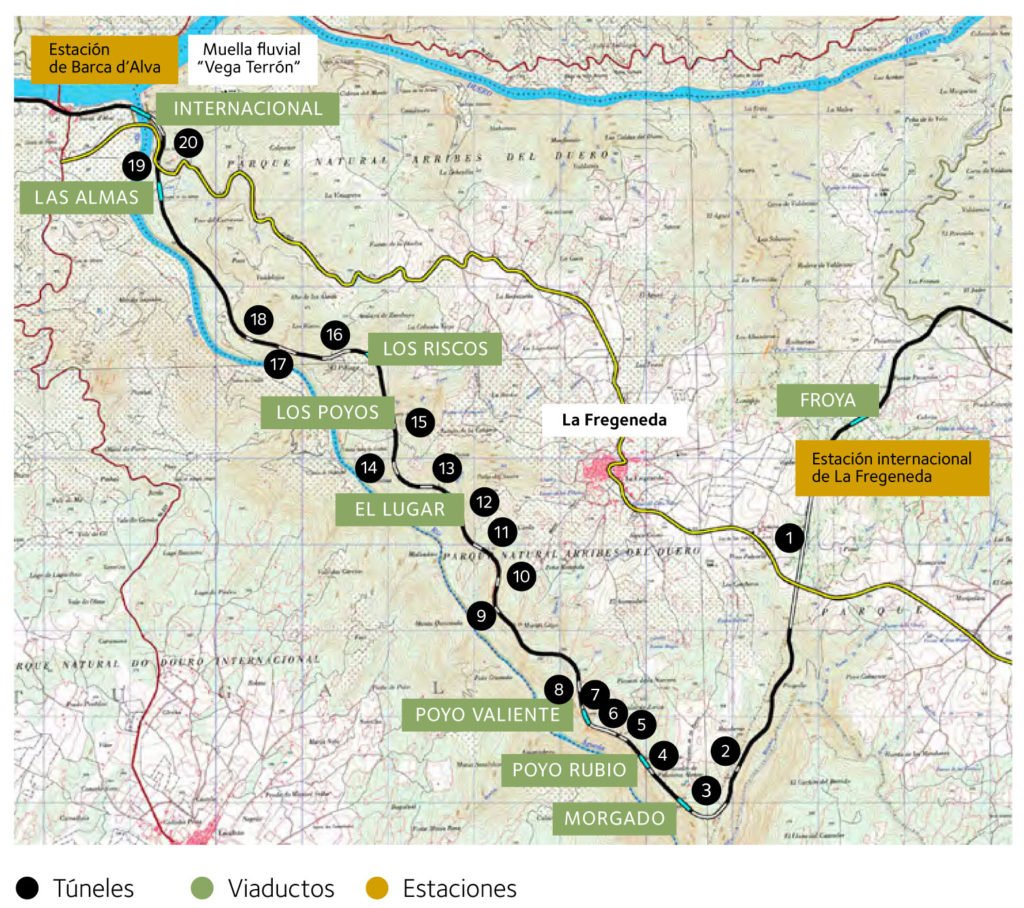 La línea de La Fuente de San Esteban a Barca d’Alva y la Linha do Douro conforman una obra pública transnacional de gran valor patrimonial, tanto por lo que se refiere al proceso histórico de su gestación como al esfuerzo técnico que supuso superar las arribes del Águeda, entre la estación portuguesa de Barca d’Alva y la española de La Fregeneda. Pero además del valor intrínseco, hay que considerar también su valor instrumental, ya que, como infraestructura territorial que es, constituye el soporte más apropiado para estructurar los diversos espacios patrimoniales de La Raya.