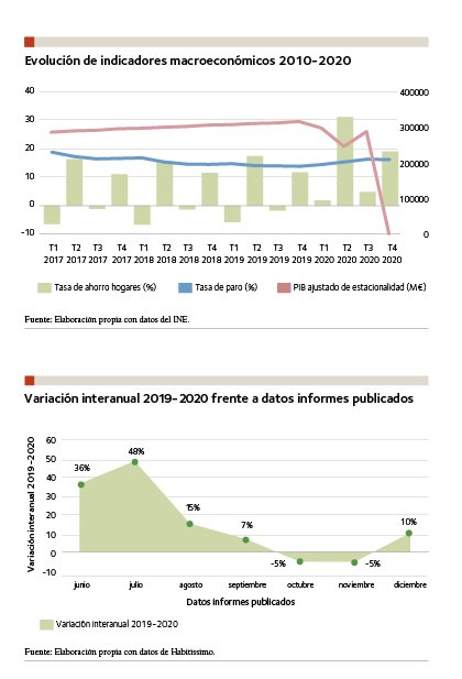 A la salida del confinamiento, gracias a la capacidad de ahorro de los hogares, se posibilita la desenfrenada búsqueda del ciudadano para mejorar su vivienda una vez ha sido consciente del estado de conservación de la misma. Deja de aceptar condiciones de habitabilidad asumibles en tiempos pre-COVID, cuando su permanencia en la misma era más reducida tanto por trabajo como por ocio. Se llega así a alcanzar un incremento en las solicitudes recibidas cercano al 50 % como se refleja en el Informe anual sobre la Reforma de Habitissimo 2020.