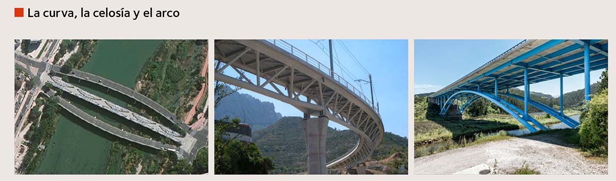 De izquierda a derecha: Puente del Pilar en Zaragoza (1992). © zaragozaarquitecturasigloxx.com; Puente del Centenari en Montserrat (2003). © CFC; Puente del Escudo (1999). © CFC.