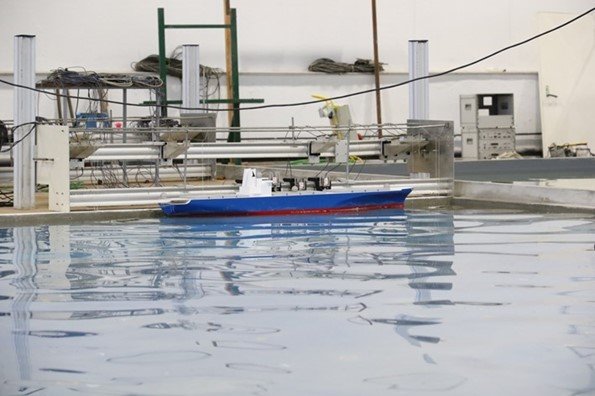 - ensayos en modelo físico para el estudio de la respuesta frente al oleaje de un dispositivo para almacenamiento de hidrógeno tipo GBS, para ACCIONA;