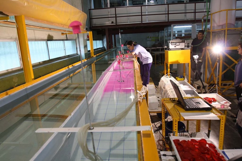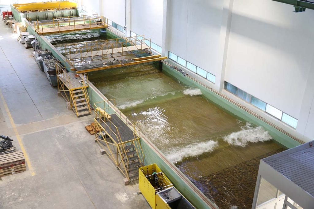 - Canal de oleaje y corrientes: canal de dimensiones aún más reducidas (20 x 1,20 m y 0,80 m de profundidad), es utilizado principalmente para estudios de hidráulica medioambiental marina.