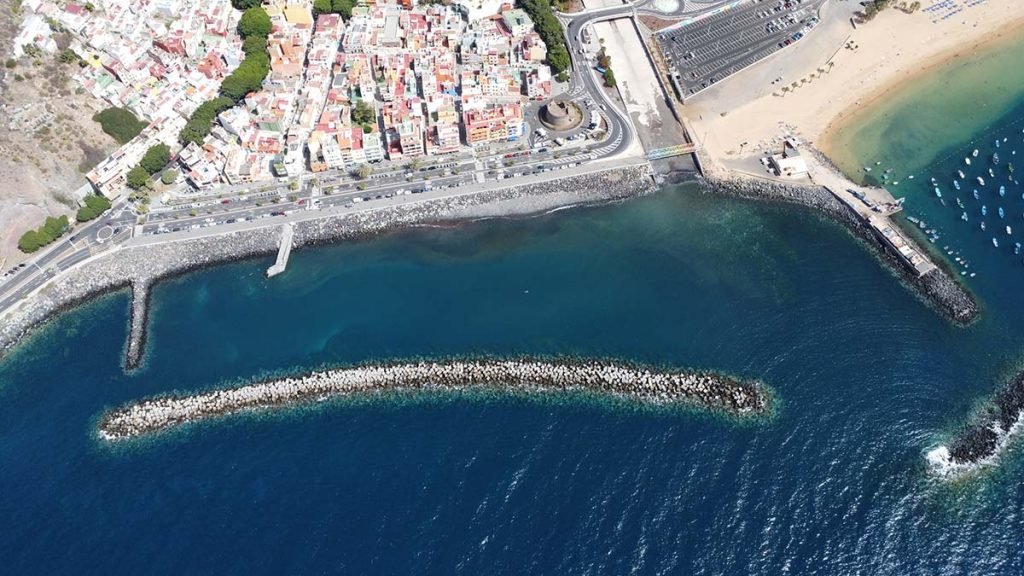 Una de las características físicas típicas de las islas volcánicas en general es que presentan una plataforma costera reducida, que contrasta con las grandes plataformas costeras de los continentes. Tenerife no es una excepción. Hay puntos de su costa en los que la batimétrica ‑1000 está a menos de una milla de la costa. Esta circunstancia hace que solo dos de sus 90 obras marítimas —en concreto, los puertos de Santa Cruz y de Granadilla, ambos en la costa este—se hayan construido en aguas de transición, estando todas las demás ubicadas en aguas someras, por lo que quedan sometidas a situaciones de rotura en temporales.