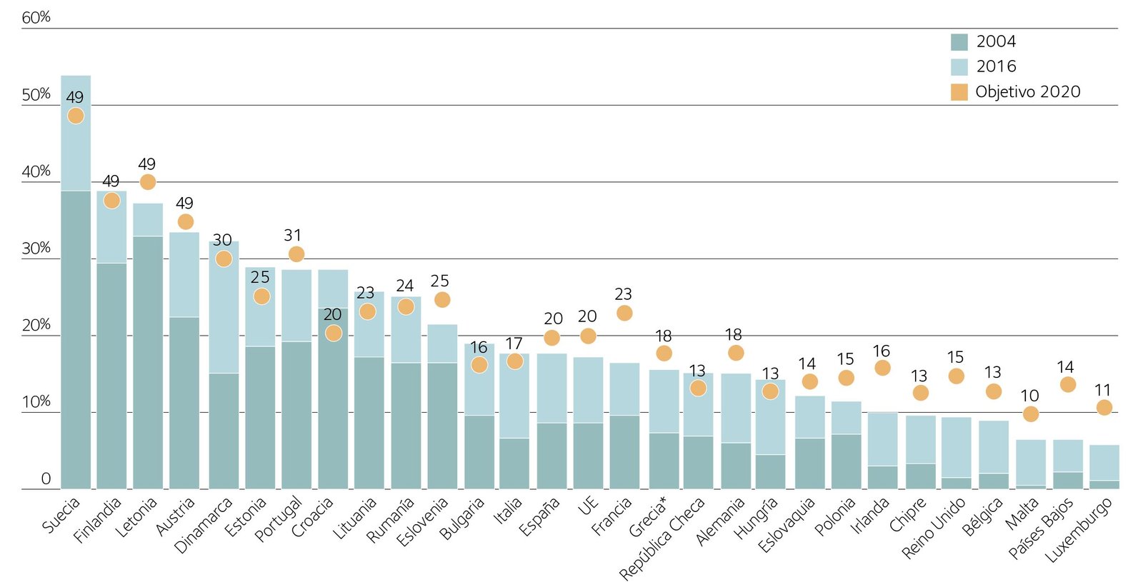 Energías renovables en la Unión Europea. Porcentaje respecto al consumo bruto de energía total