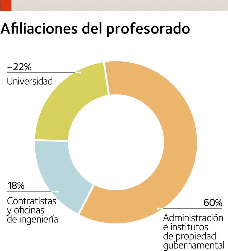 Casi el 25% de los aproximadamente 75 profesores que componen el elenco son antiguos alumnos. Como se muestra en la tabla inferior, las afiliaciones de los profesores son variadas (sector privado, administración y varias escuelas de ingeniería de caminos).